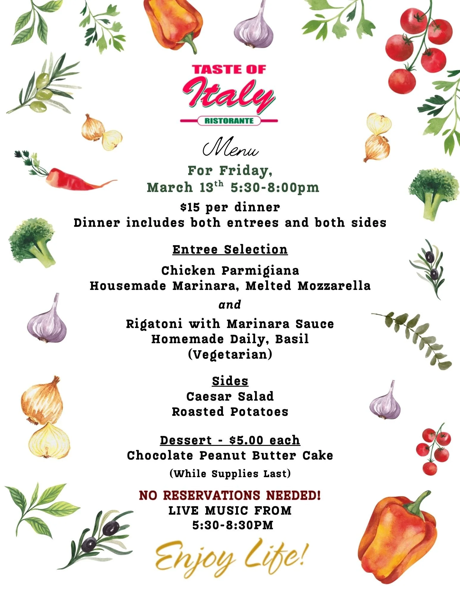Join us for Friday Night Dinner from Taste of Italy on 3/13!
